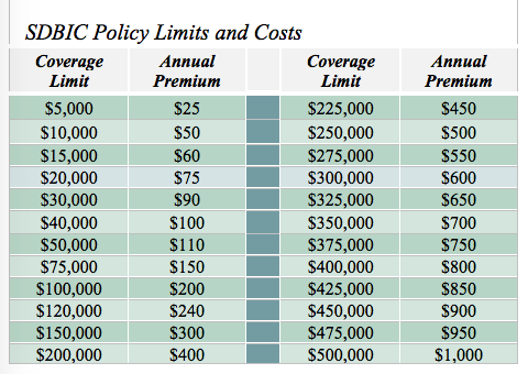 The policy is issued directly in your name for the exact amount of additional coverage you desire. You can change the amount of coverage at any time by going on-line or by calling an SDBIC customer service representative.